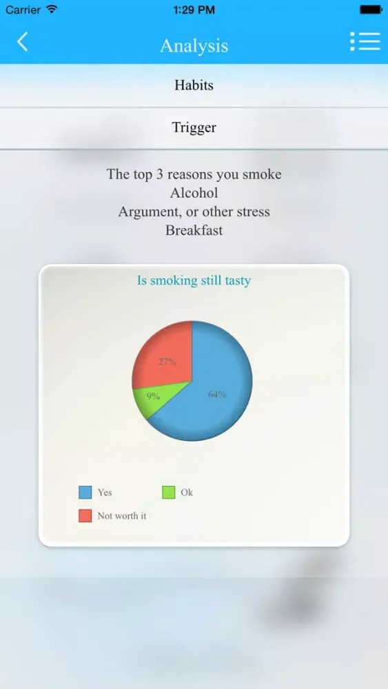 1. Using our unique tracker, you will log every cigarette that you smoke, what you were doing and when you smoked. Smokers just smoke and are not aware why. Learn why you smoke with analyses of triggers and habits, delinking your behaviors that chain you to smoking.