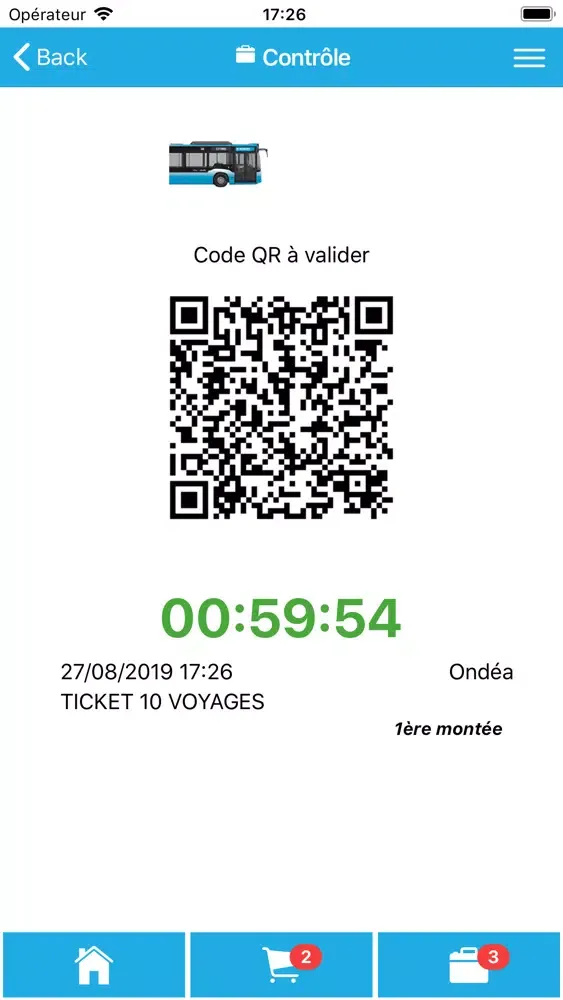 Avec cette application, il est simple d’ajouter des titres de transport à votre portefeuille virtuel. Il suffit de sélectionner les titres voulus et de les payer avec votre carte de crédit. Au moment de monter à bord, vous activez votre titre, ce qui génère un QR Code qu’il vous suffit de « scanner » sur l’appareil de validation dans l’autobus.