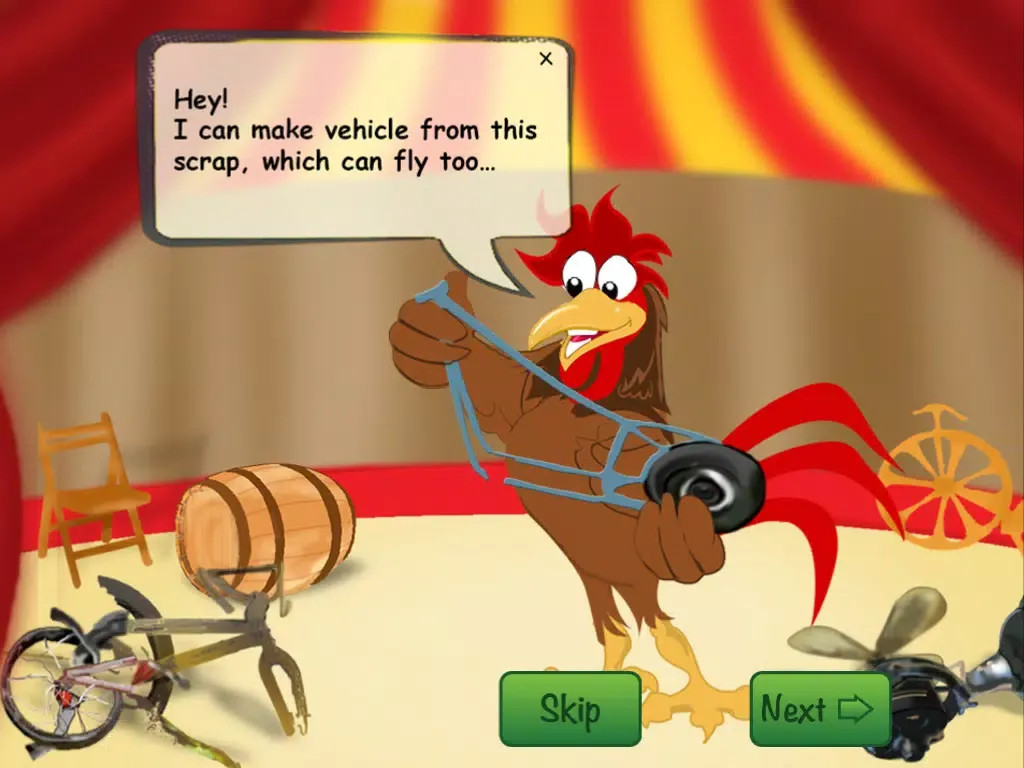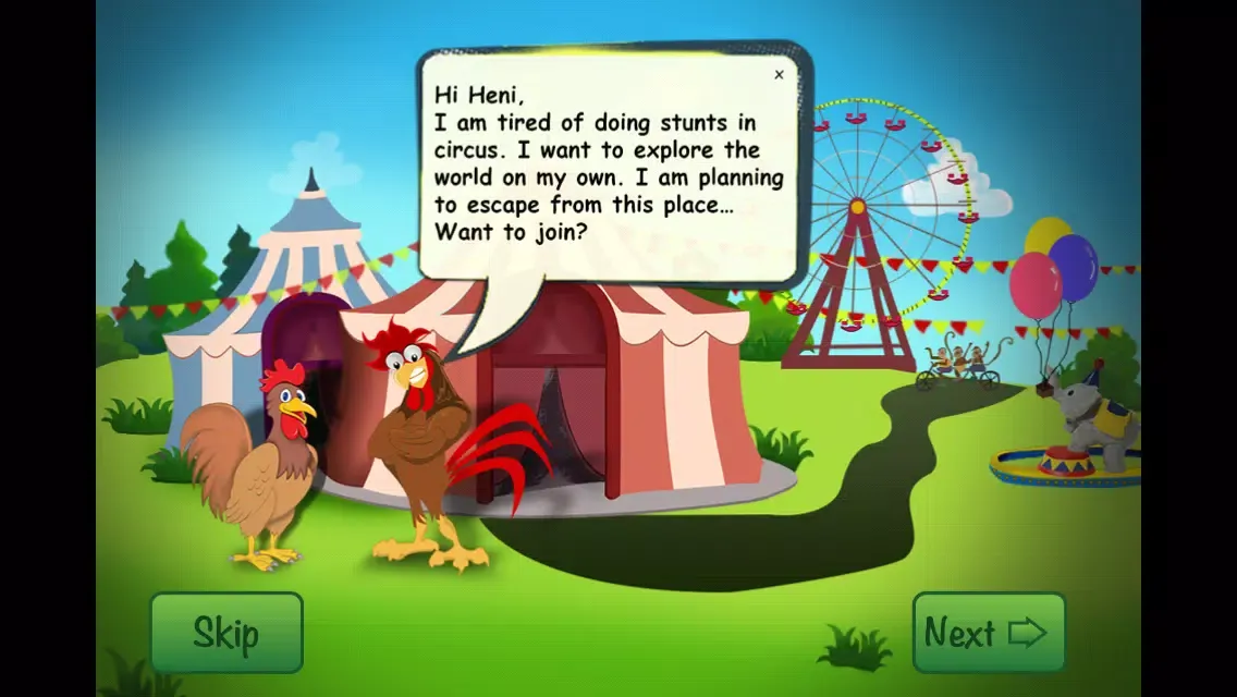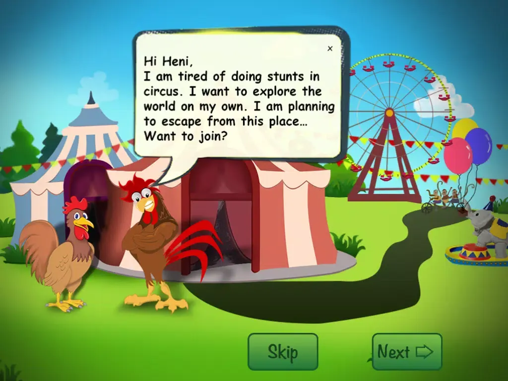This is a story game of a rooster who spent his childhood in a circus and knew less about his family.
