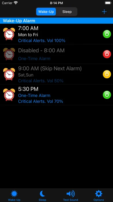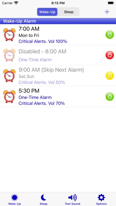 • Recurrent alarms (weekdays, weekends) or one-time alarms