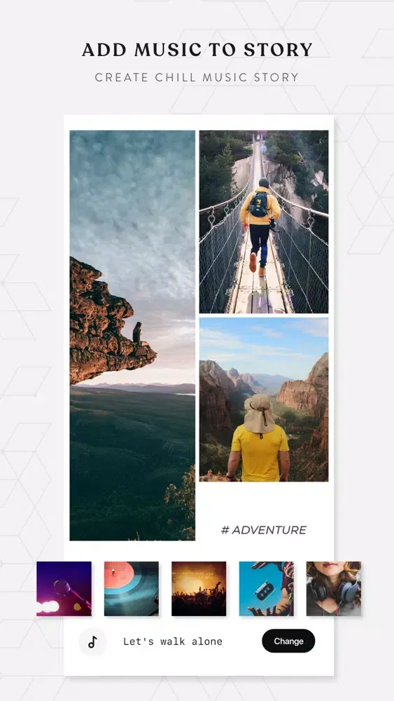 The best story editor & story maker lets your story stand out in the easiest way. 500+ unique and chic designs to express your thoughts and life moments into elegant stories. Just select some photos, decorate them with templates, text, background, highlight cover and it’s done!