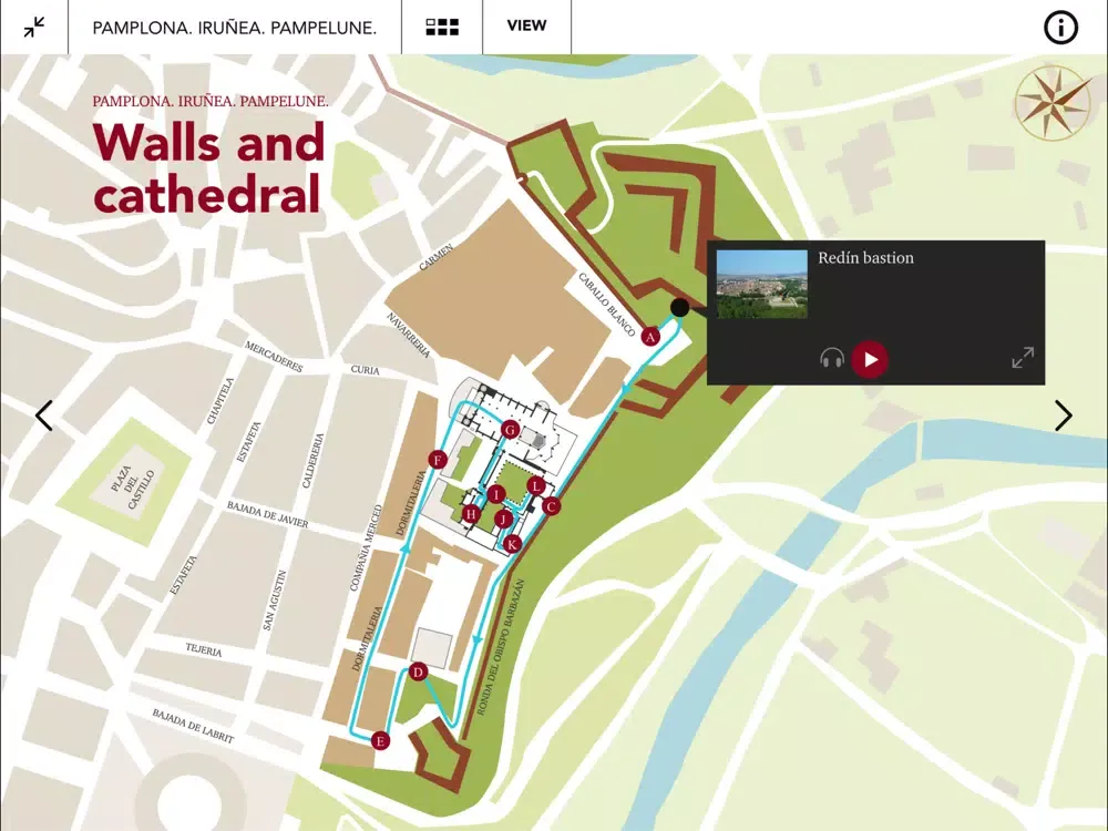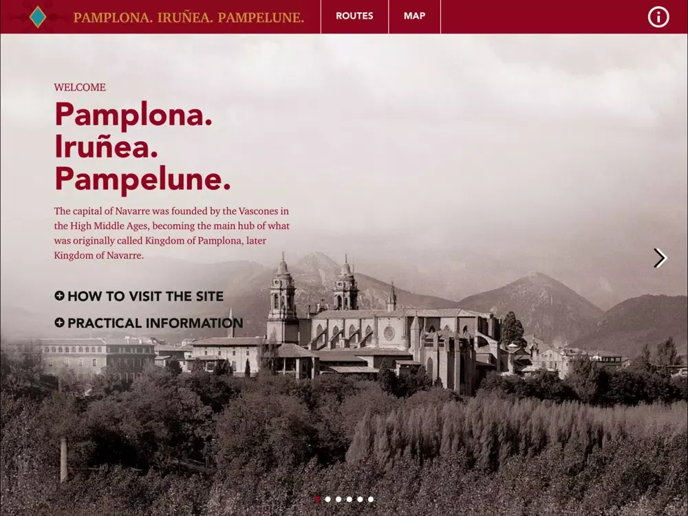 An authentic guided tour for different walks allows you to discover the emblematic places in Pamplona. It provides an audioguide, a complete map, practical information for visitors and a section where you can previously plan your visit.