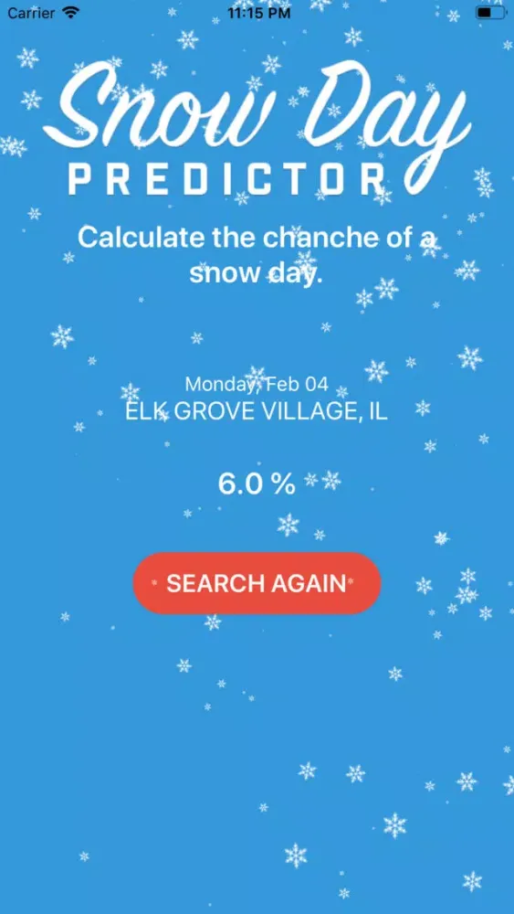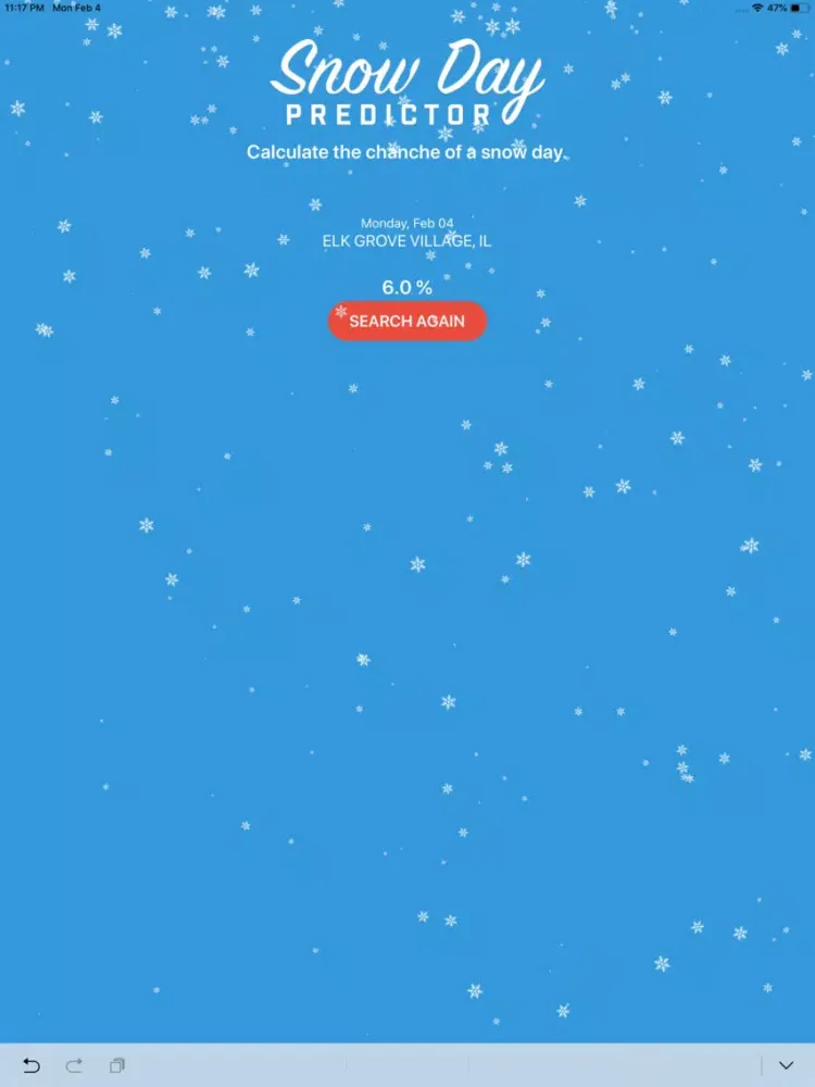 Snow Day Predictor is a trusted way to calculate the chance of school being delayed or closed due to inclement weather!