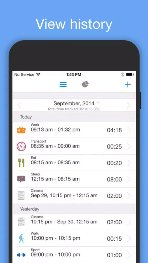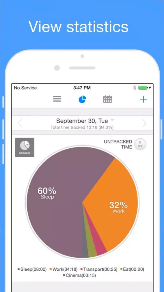 Spending only a few minutes a day on this app you will get daily, weekly and monthly statistics in the form of diagrams and graphs. Using this data you'll be able to control and manage your time.