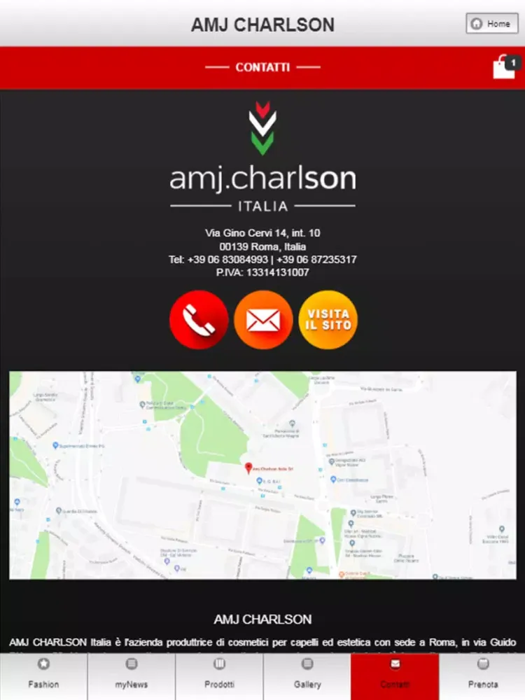 AMJ CHARLSON ITALIA è l'Azienda produttrice di cosmetici per capelli ed estetica con sede a Roma, in via Guido D'Arezzo 23. L'azienda pone attenzione ad ogni particolare, per trovare le soluzioni più innovative ed affidabili del mondo per la cura e la bellezza della persona, servendosi dei migliori laboratori di produzione e di artigiani di successo, che con costante aggiornamento garantiscono la formulazione di prodotti ed accessori, fatti unicamente utilizzando materie di prima qualità.
