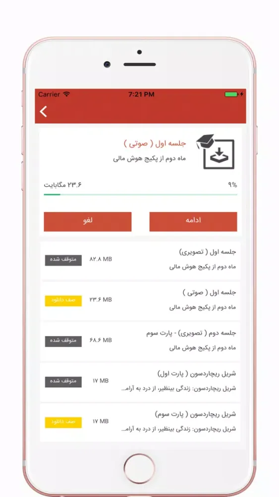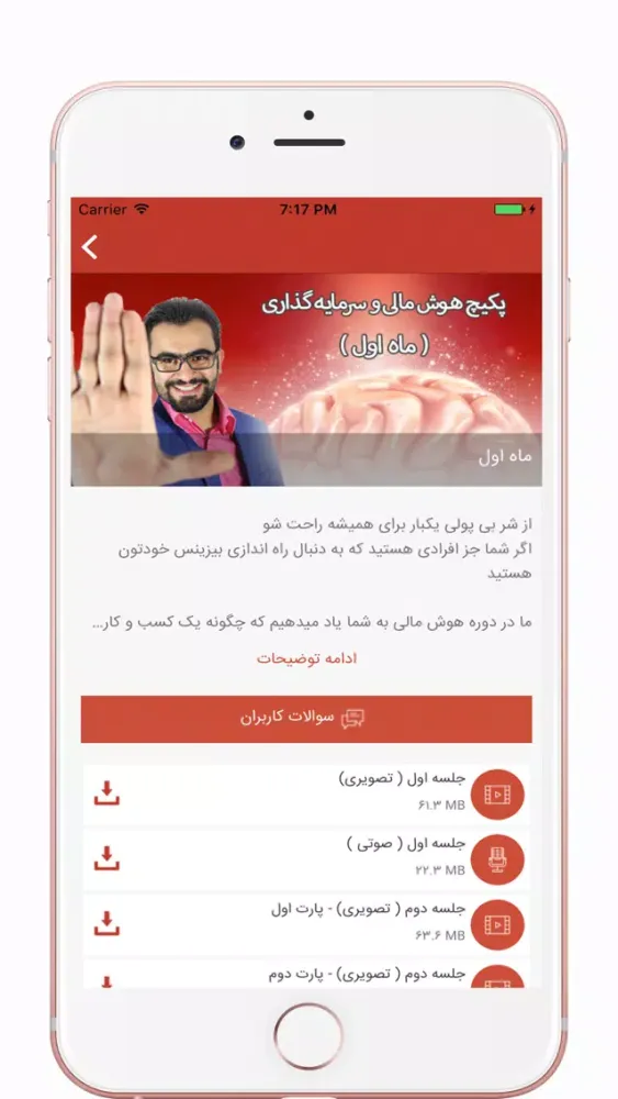 دسترسی راحت به دوره های آموزشی در زمینه های تجارت و کسب ثروت که به صورت صوتی و تصویری آماده سازی شده است . فایل های آموزشی به صورت آفلاین بر روی گوشی همراه شما ذخیره می شود و می توانید در آینده به آنها گوش دهید . همچنین می توانید نظرات خود را به صورتی صوتی یا تصویری در خصوص دوره ها برای ما ارسال کنید تا بر روی نرم افزار قرار بگیرد . سوالات خود را در هر زمینه ای که مربوط به دوره باشد می توانید بپرسید تا ما به شما پاسخ دهیم .