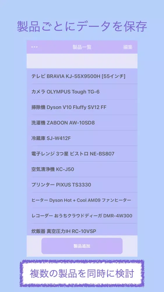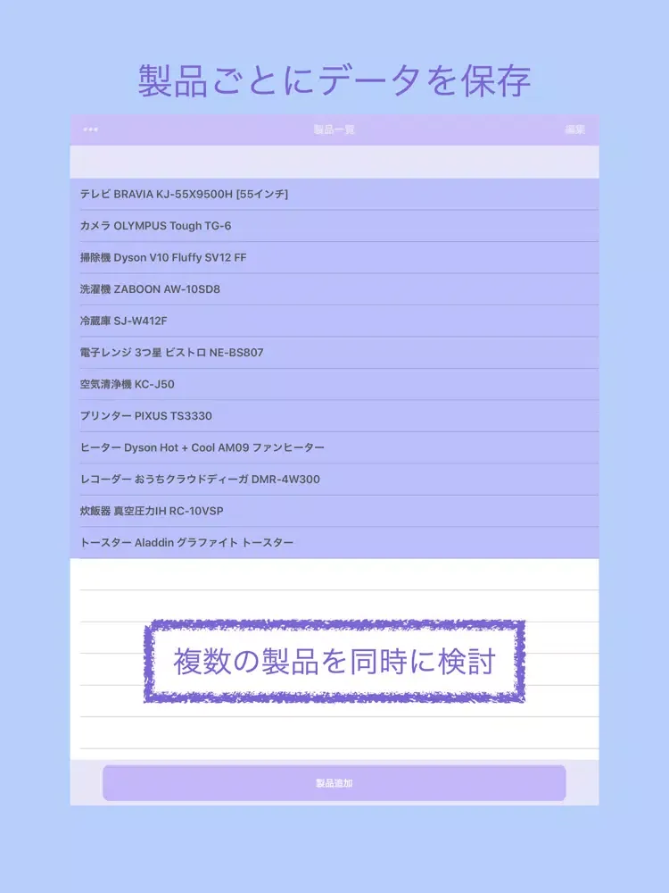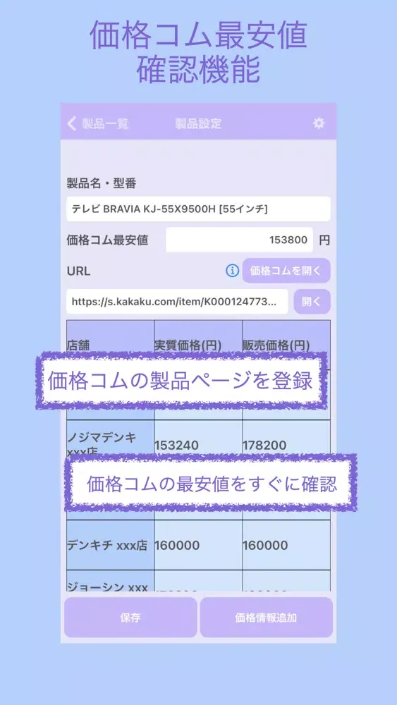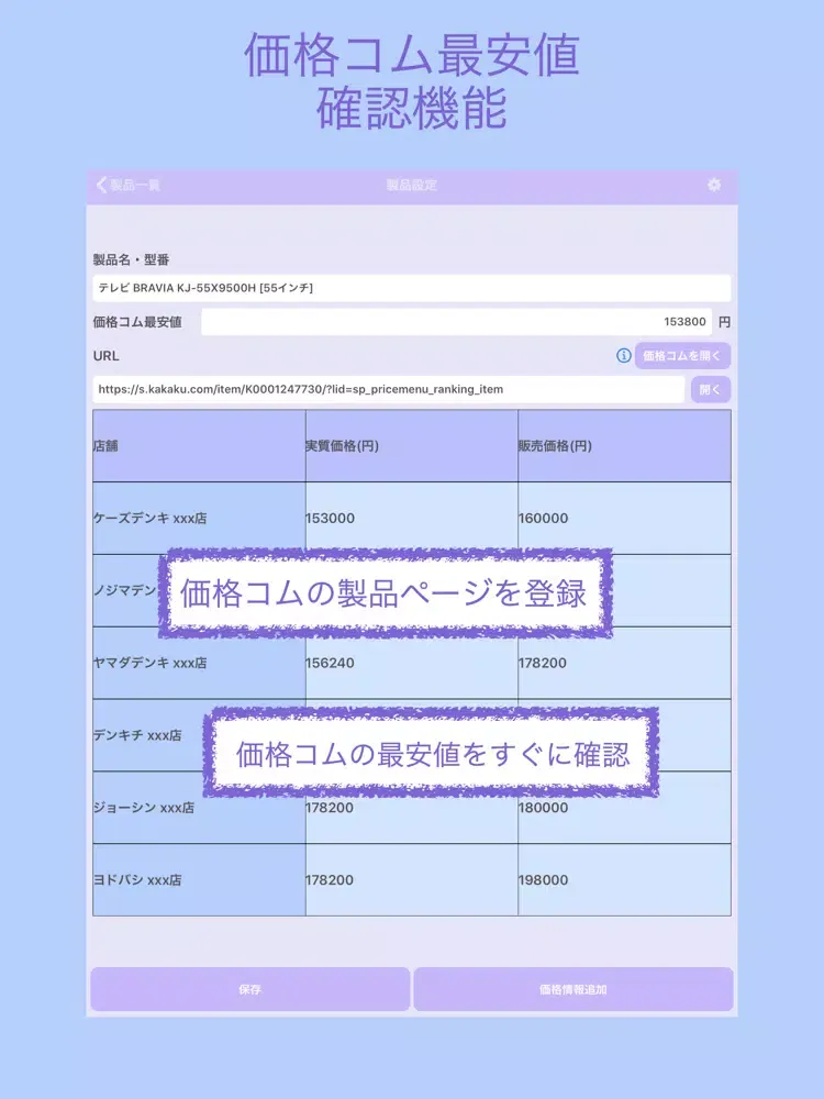 買いたい製品ごとに価格情報を登録することができ、複数の製品を登録することが可能です。