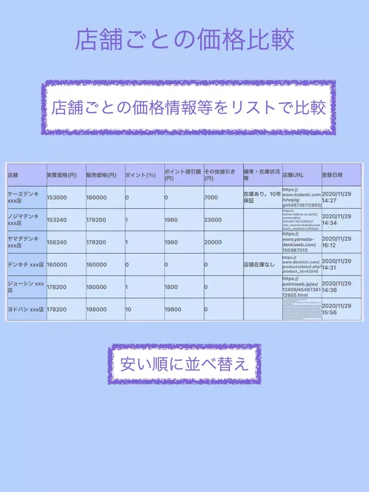 購入したい製品ごとに価格コムの製品ページのURLを登録することができます。