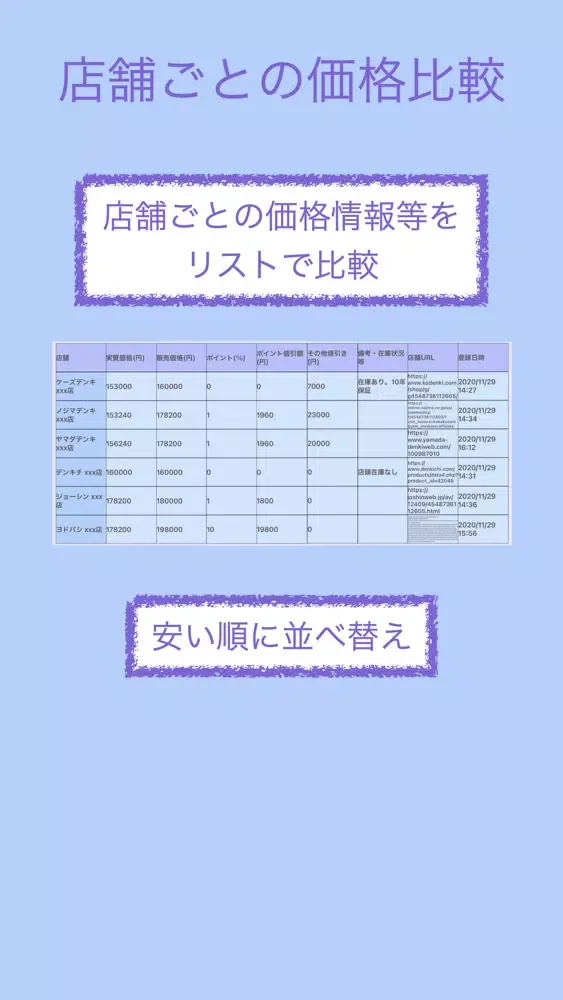 店舗の価格情報一覧のURLセルをタップすることで確認できます。