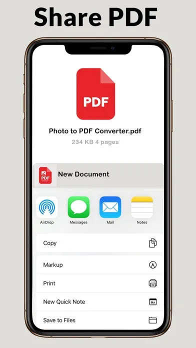 Easily and Quickly convert your photos to PDF and share it with your friends and family with easy steps. Choose your layout or grid layout, margin, page orientation, and paper size, cover page, page header & footer and Preview your PDF photos and save , share and print PDF document with securely. Photo to PDF is an easy and intuitive JPG to PDF Converter. Image to PDF works with all PNG, JPG, HEIF, and HEIC image file.