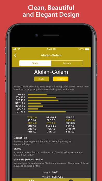 Full Pokédex for all Pokémons including new Pokémon from Pokémon Ultra Sun and Moon. All Alolan forms, Mega Evolutions, and event Pokémons are included. Get all the information of every Pokémon at your fingertips! No internet connection is required!