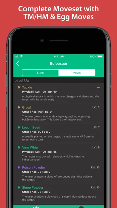 Browse each's Pokémon's abilities and complete moveset including Level Up Moves, TM/HM Moves, Egg Moves and Tutor Moves.