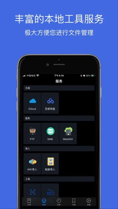 支持FTP,SMB,WebDAV,WIFI传输协议