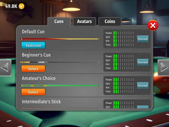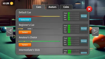 3. Customizable Cues & Tables: Personalize your game with a variety of cues and tables, each with unique designs and attributes.