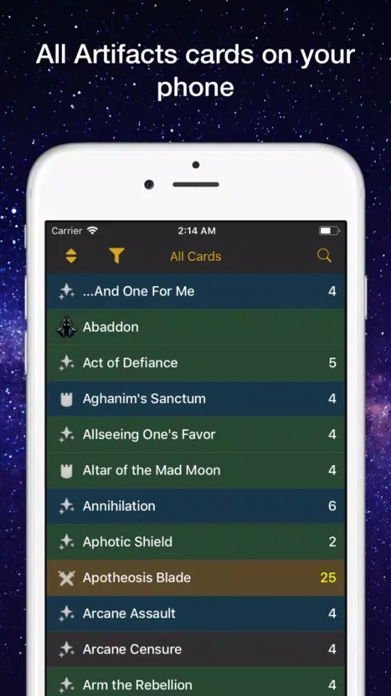 Amazing pocket wiki for Artifact. Cards, multiple filters, sorting, search and quiz game with statistics are already available. Check it out.
