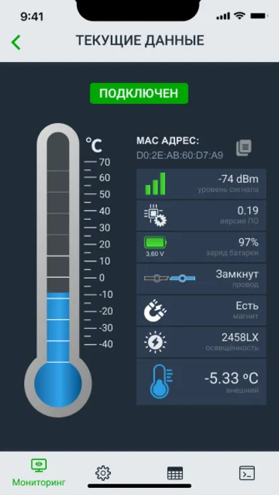- При использовании датчиков температуры есть возможность проверить точность показаний температуры и проанализировать статус цепи (геркон).