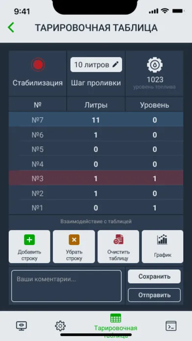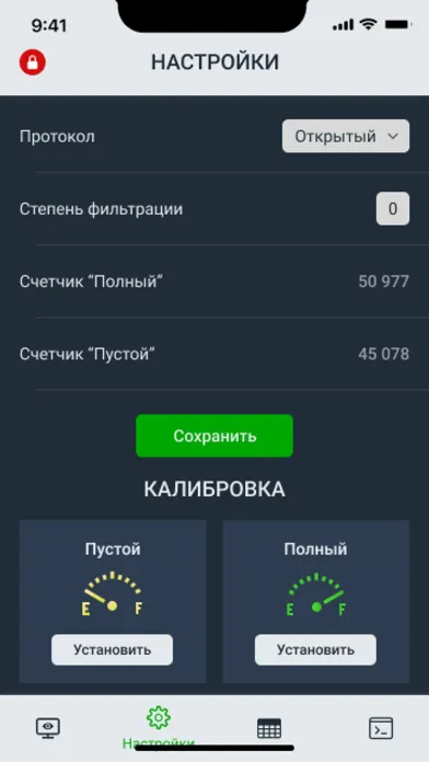 - Для датчиков уровня топлива предоставляется функционал калибровки с возможностью установки значений "пустой" и "полный". Также имеется возможность регулировки степени сглаживания и выполнения таррировки.