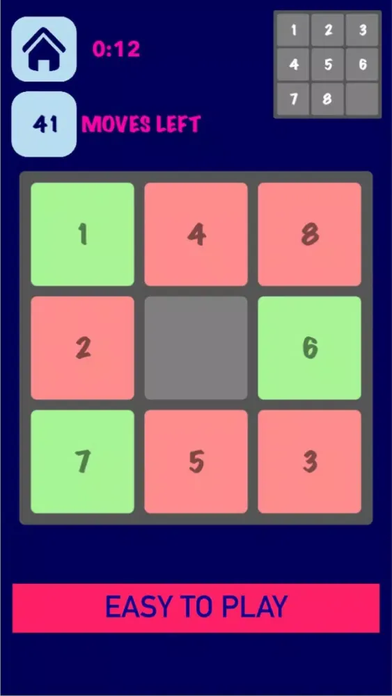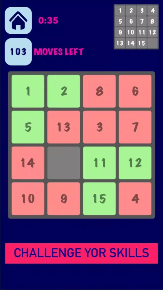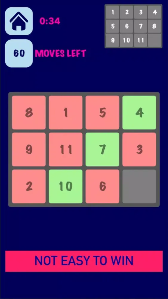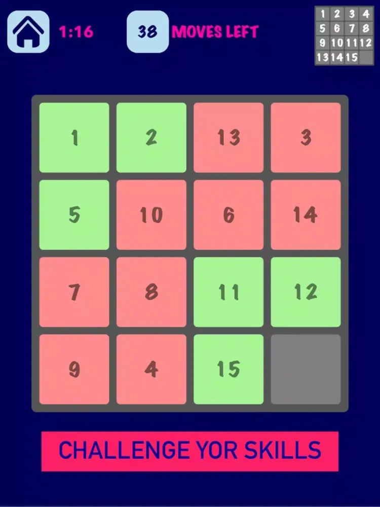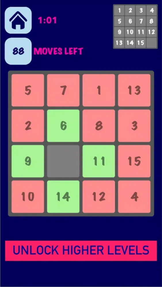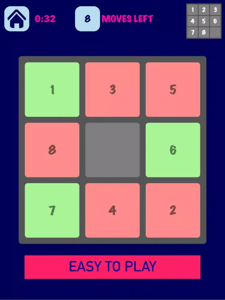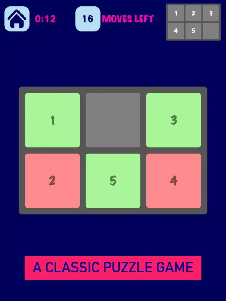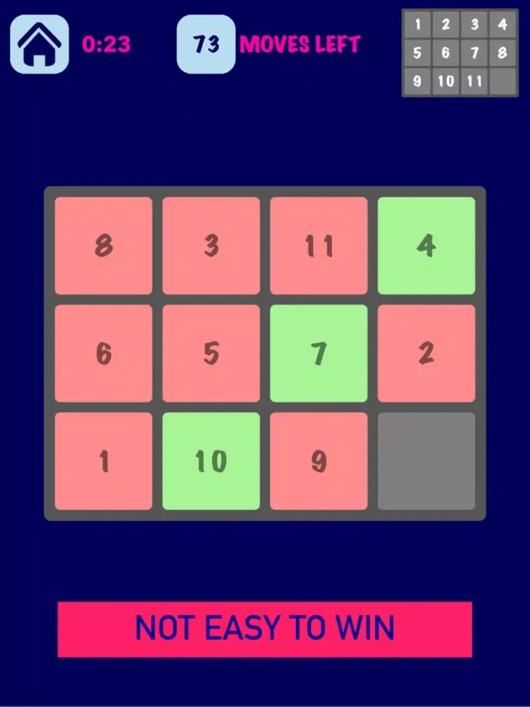 The goal is to sort the numbers in right order. Controls are simple, just swipe right, left,up or down to slide the blocks. When the block is in right place it will change colour.