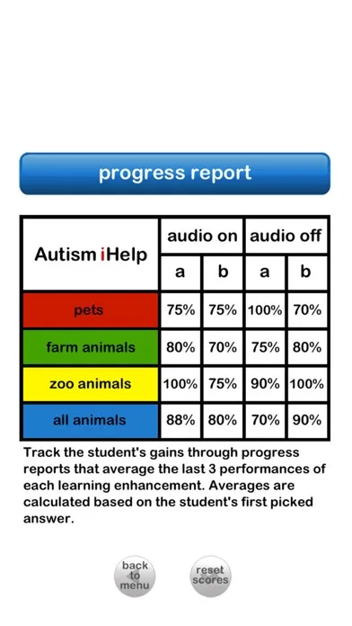 - This app also includes two Learning Enhancement activities. These learning activities are presented in a game-like format, and require the child to either match a picture to word given multiple word choices or choose the word that goes with the picture in a field of 4 pictures. These games check retention of the learned vocabulary and integrate auditory and visual memory. Additionally, you are able to track your child's gains through progress reports that average the last 3 performances of each learning enhancement activity.