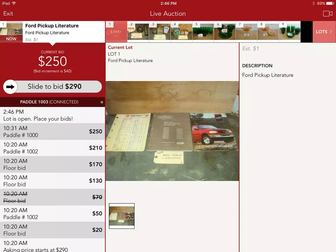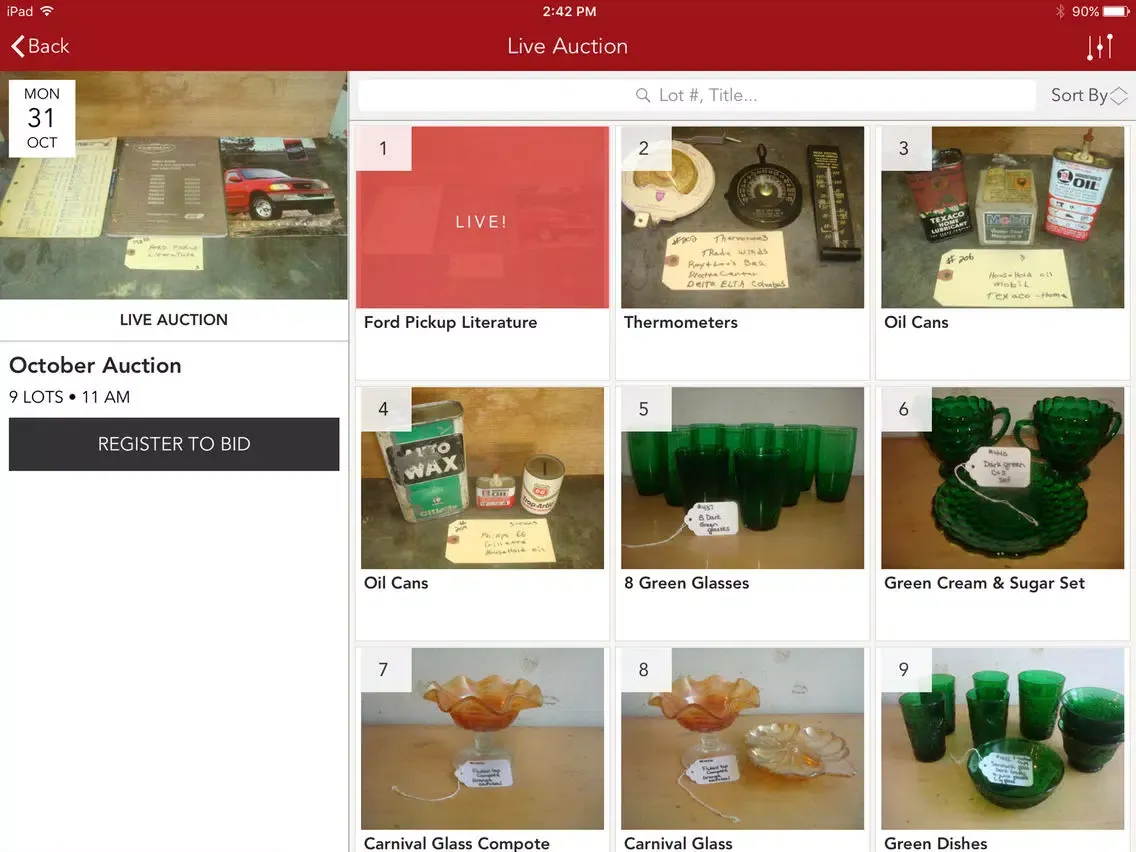 Capturas de tela do Grubaugh Auction Mobile App iPad
