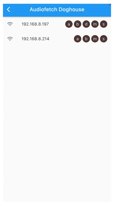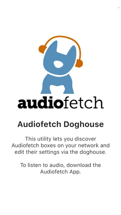Upon running this application, it will scan for and discover all the AudioFetch devices which are present on the WiFi network, and display a selectable list of them to the user. The user may tap on an item to have the serial number copied to their clipboard, and then they will be taken to the configuration management screen, in an external browser window, for the selected device.