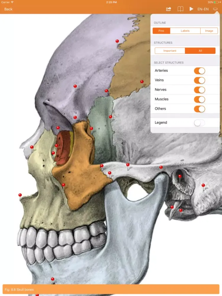 The Sobotta Anatomy App, based on over 100 years of precision anatomical publishing knowledge, is the easiest and most enjoyable way to learn anatomy and test your skills. It is an anatomically-detailed app with over 25,000 precisely placed pins covering the complete human body: