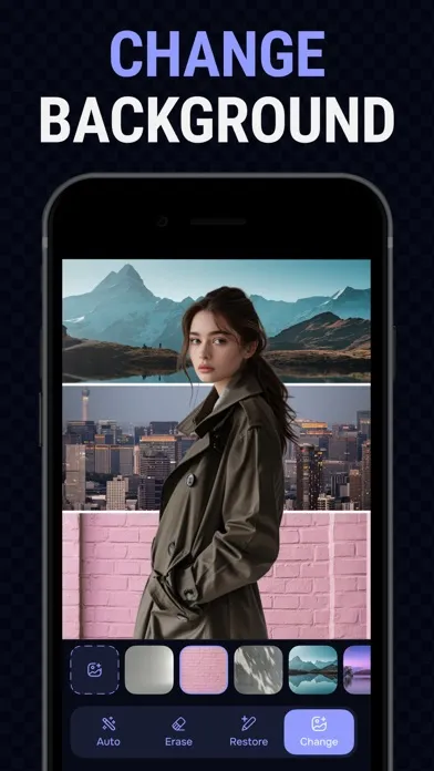 Our app offers an intuitive photo cutting and editing experience, using AI tools to automatically remove backgrounds from your photos. Effortlessly remove or change photo backgrounds, or let AI generate new ones to highlight your products or photographs with striking PNG images.