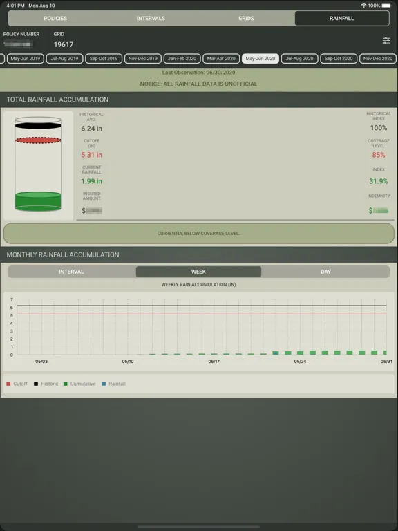 Broken Arrow Crop Insurance specializes in the Rangeland and Apiculture USDA insurance programs and has experience and expertise in these programs that others can’t or won’t offer. This app can be used by Broken Arrow customers to leverage this experience to track and review rainfall for their grid against their coverage level.