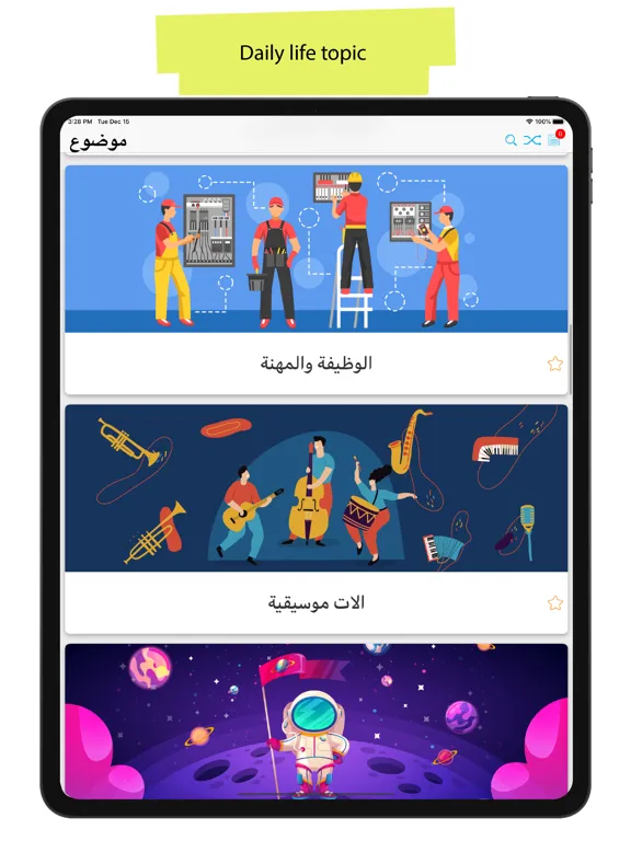 ► Add all your new vocabulary to Reminder, it will remind you to learn your Arabic vocabulary daily