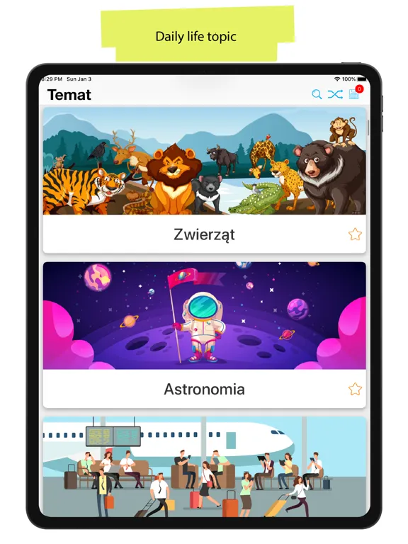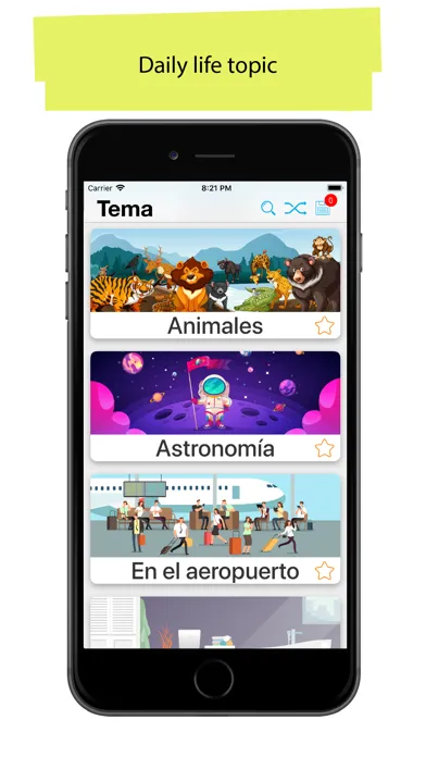 "50.000 Spanish " app is perfect for Beginner, Pre-Intermediate , Intermediate and Upper-Intermediate levels. Start with basic words and topics, and Learn new words daily! Review learned words and topics with flashcard, test and listening tasks features.