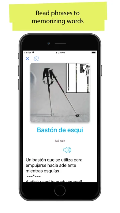 Use most effective memory technique to build your Vocabulary skills. "50.000 Spanish " app is the best way to improve your language skills by answering Test and Listening task questions.