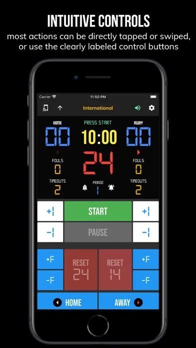 - Convenient timers: pregame timer, period timer, rest timer, timeout timer, overtime, etc.