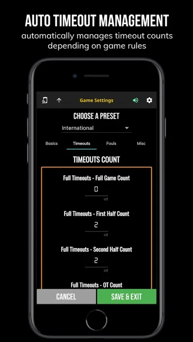 - Convenient Presets (International, 3x3, US Pro, College, High School, and more...)