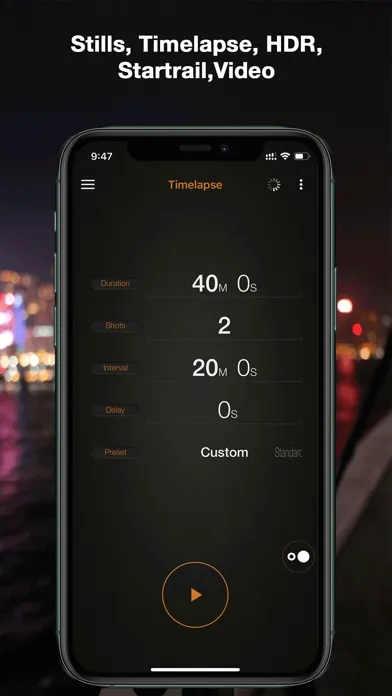 - Timelapse: Start-Delay, Presets, Bulb-Ramping, End Notification
