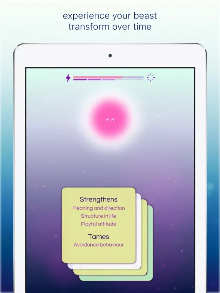 Beasts of Burden brings a poetic and playful twist to building a mindset resilient to pressure. Driven by an A.I. that provides you with bite-sized sessions that help you practice lifting those burdens every day.