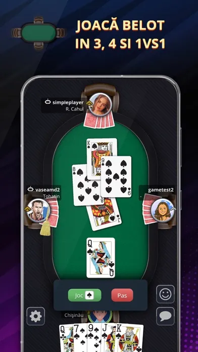 Descarca aplicatia, creeaza un cont nou si imediat vei putea juca belot la o masa de 2, 3 sau 4 persoane. In caz ca inca nu cunosti regulile jocului le gasesti chiar in aplicatie in sectiunea Reguli. Pe langa jocul in belot vei putea indeplini misiuni, participa la campionate, lupta pentru cu clanul pentru teritoriile Moldovei si multe alte chestii interesante altauri de prietenii tai.