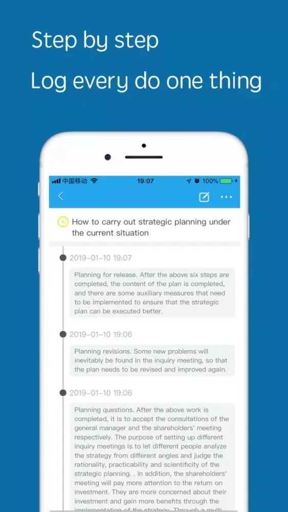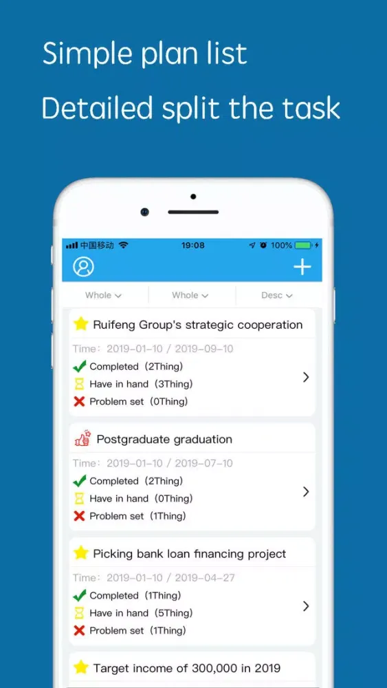 It's a pretty sophisticated iOS app, what can it bring you? In a word, it can help you organize and analyze each plan, by the complexity of simplicity, bit by bit. It can also help you record the way you do things and logs, follow up on your progress in completing the plan, analyze the problems that arise in the process, sum up the way you do things, urge you to complete every little thing, complete every little thing, let you keep getting a sense of accomplishment and honor, and finally complete a big plan,