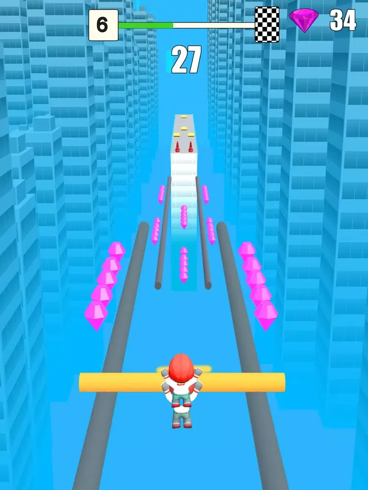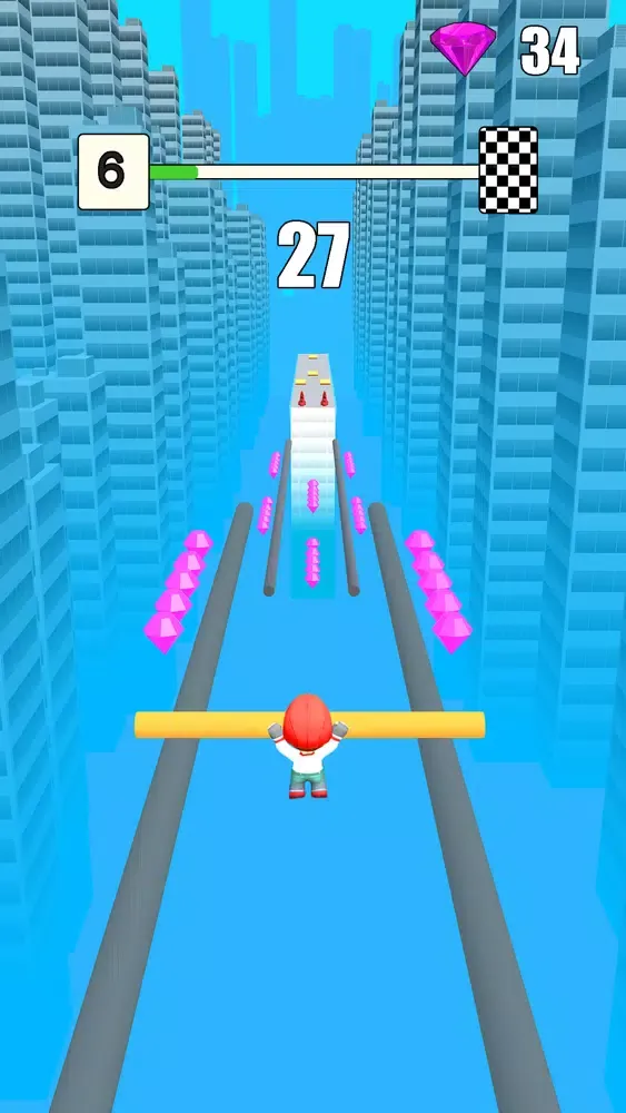 Slide Roof Rail 3d is a fun sliding game which you can play anywhere anytime. Catch the rails and slide to the next roof! Collect sticks to grow your pole. Avoid obstacles and get more diamonds in this game. In every level, you will face new obstacles and should avoid them. At the end of each level, you will jump down on the last rails. The bigger your stick, the more diamonds you get at the end of the game.