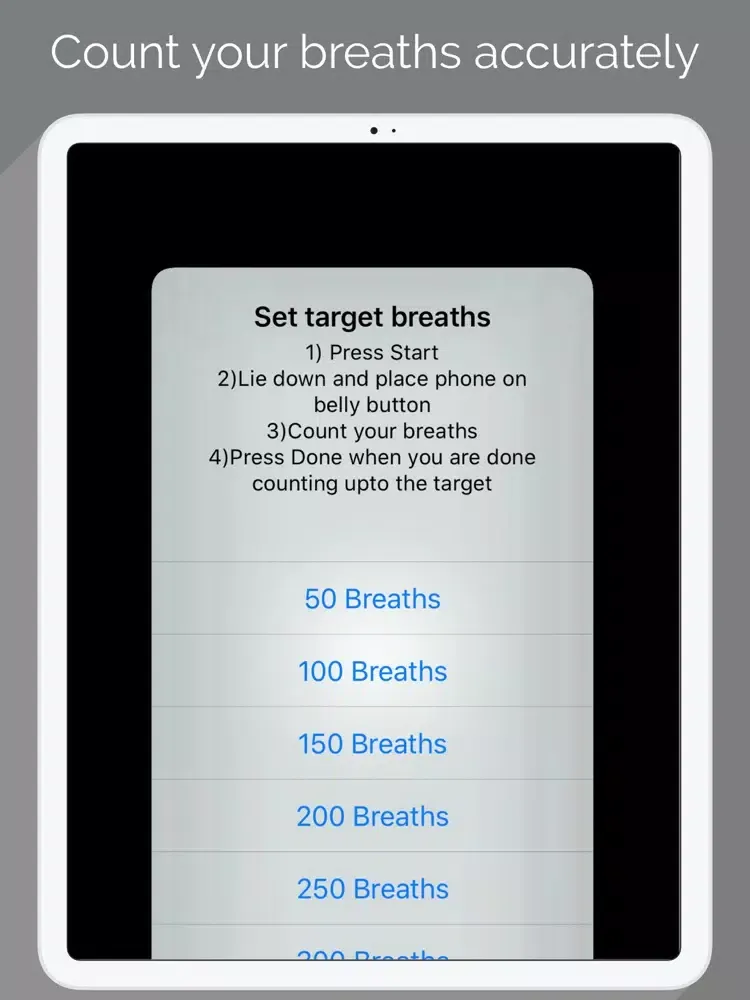Gamify your meditation with biofeedback! Count your breaths, and let the app know when you hit 50 breaths. Get rewarded with medals for keeping an accurate count.
