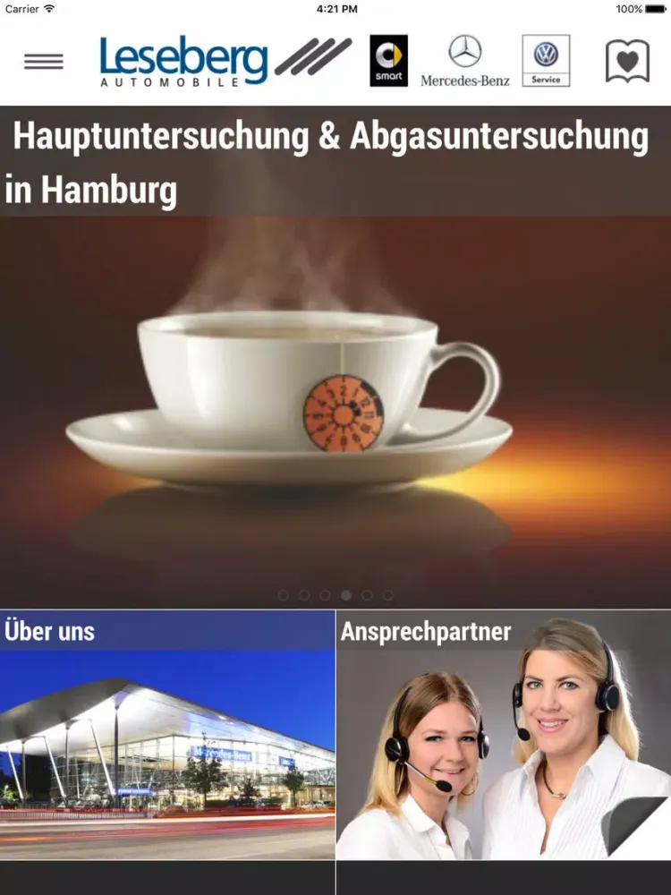 Herzlich Willkommen in der App der Leseberg Automobile GmbH - Ihrem autorisierten Mercedes-Benz & smart Partner + Volkswagen Service in Hamburg.