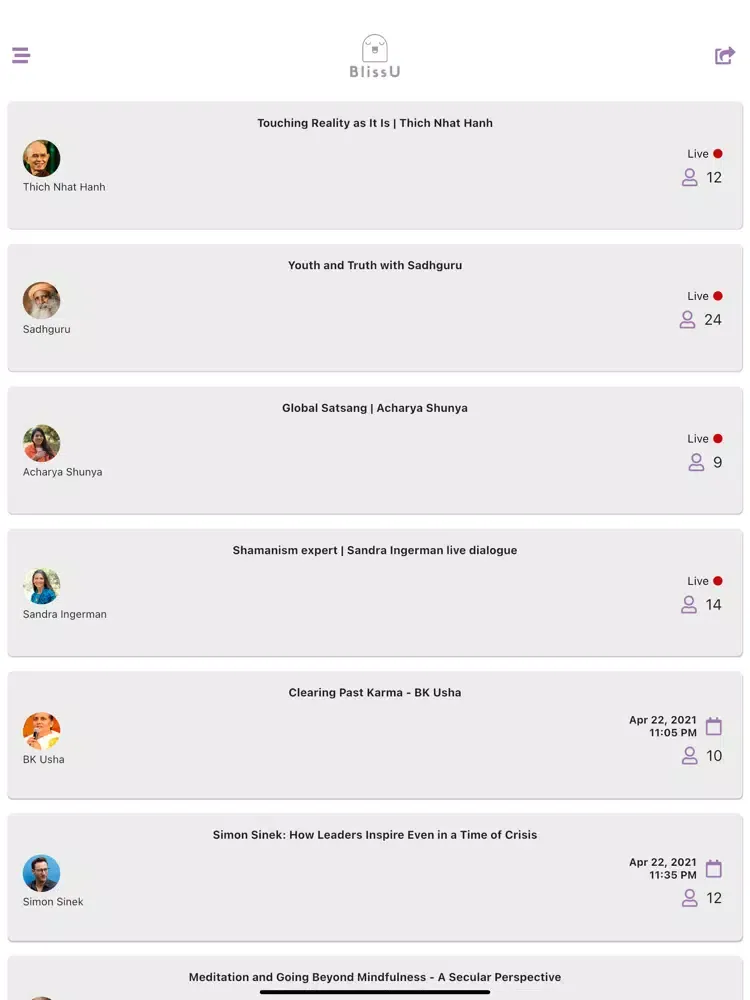BlissU will help you start your Spiritual journey by providing you with a personalized easy to follow plan. This includes Daily Learnings, Practice and Guidance.
