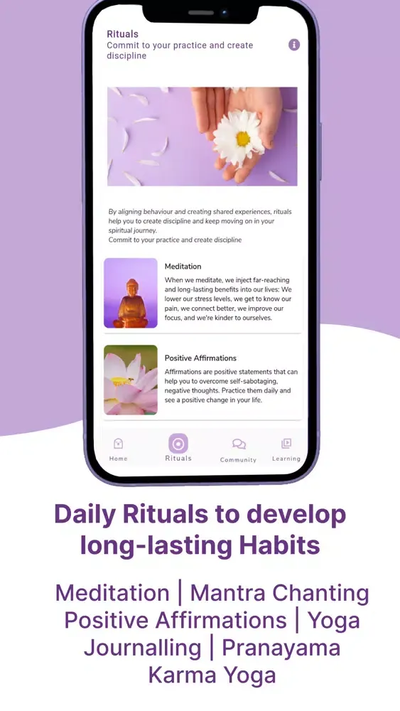 Daily Rituals: By aligning behaviour and creating shared experiences, rituals help you to create discipline and keep moving on in your spiritual journey. Explore and practice rituals on BlissU including Meditation, Yoga, Positive Affirmations, Mantra Chanting, Journalling and Karma Yoga.