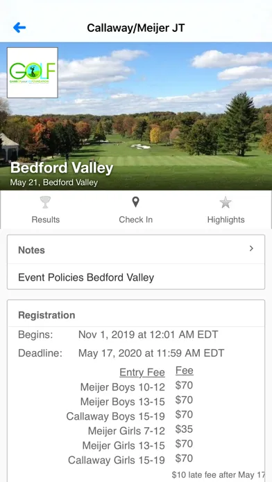 • Check in to Callaway/Meijer JT events, and use GPS to let event staff see your location on the course while you play.