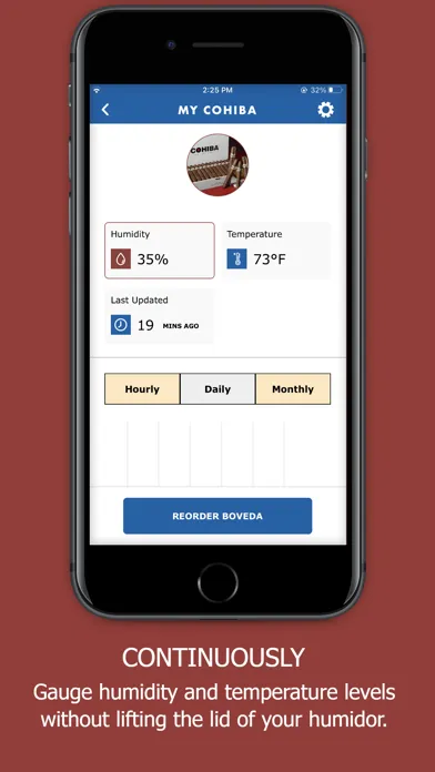 Keep a watchful eye on your cigars without lifting the lid of your humidor or container. The CI Smart Sensor will continuously gauge humidity and temperature levels inside your humidor and container providing access to those vital readings. You will receive push notifications if readings are outside your customized humidity ranges or if someone dips into your container. Analyze your hourly, daily and monthly readings, then use that info to adjust for seasonal changes or newly introduced valuables. Once you’ve linked your CI Smart Sensor to your iOS device, you can rest easy knowing that your sensor will monitor your valuables using Bluetooth Low Energy technology. The CI Smart Sensor keeps watch even when you can’t.