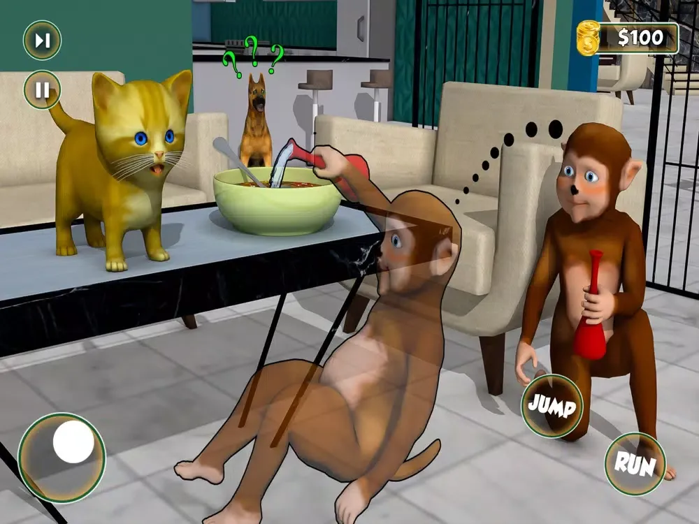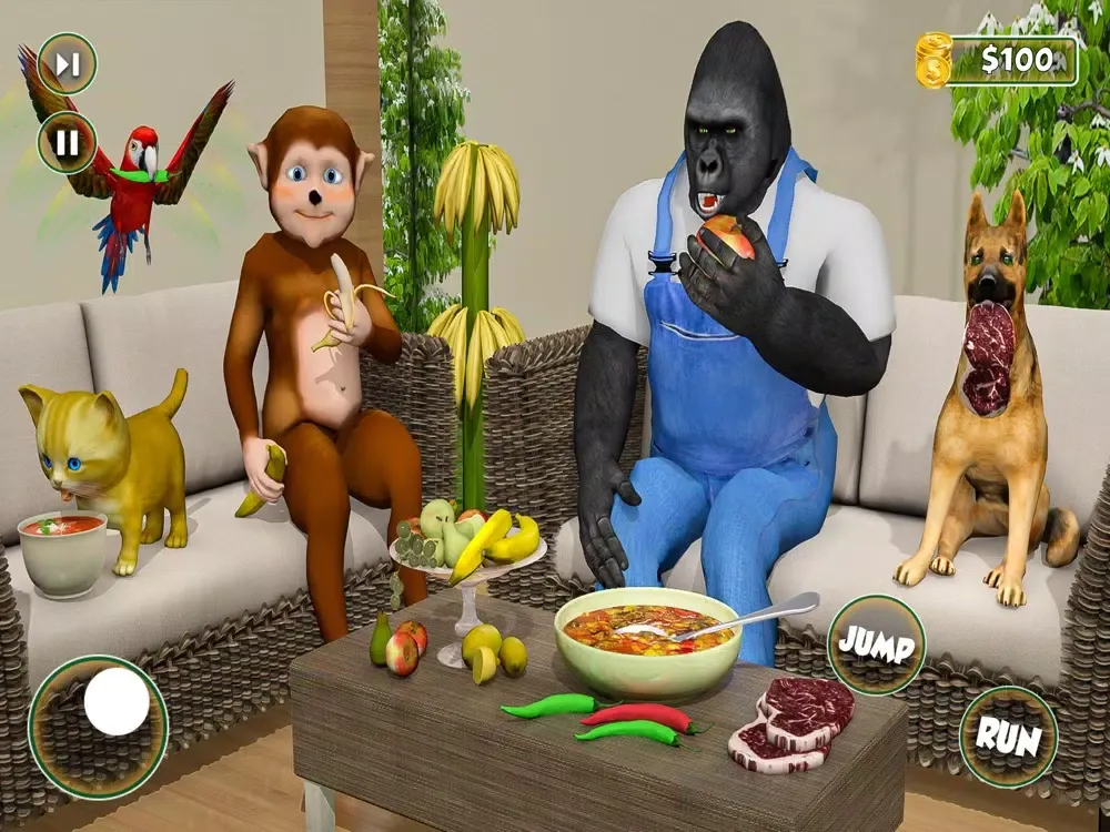 Welcome to animal family life simulator where you can live among the real life wild and pet animals and have fun and do naughty pranks with monkeys and gorilla. Do what a normal human family do for living and make the animal house fun and full of enjoyment. make breakfast for the entire animal family. clean the house. and sweetly punish the mischief monkey who always picks on the doggo.