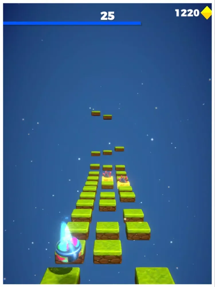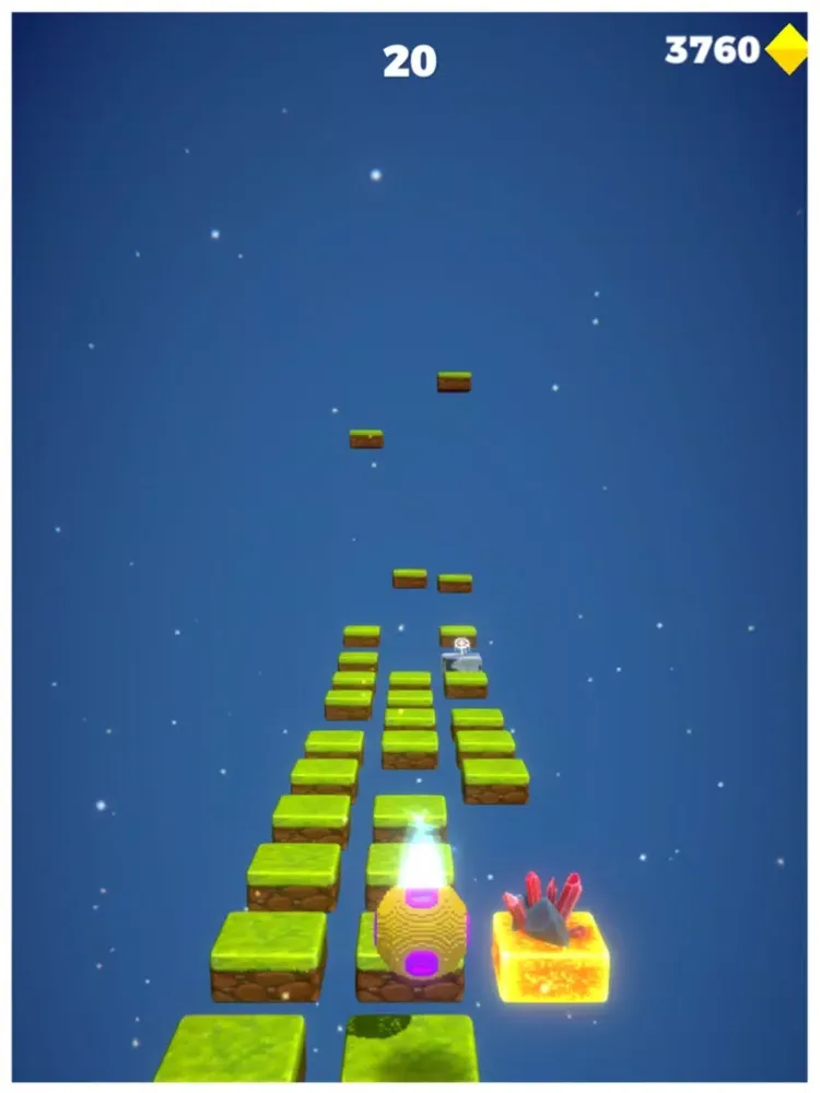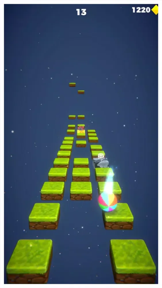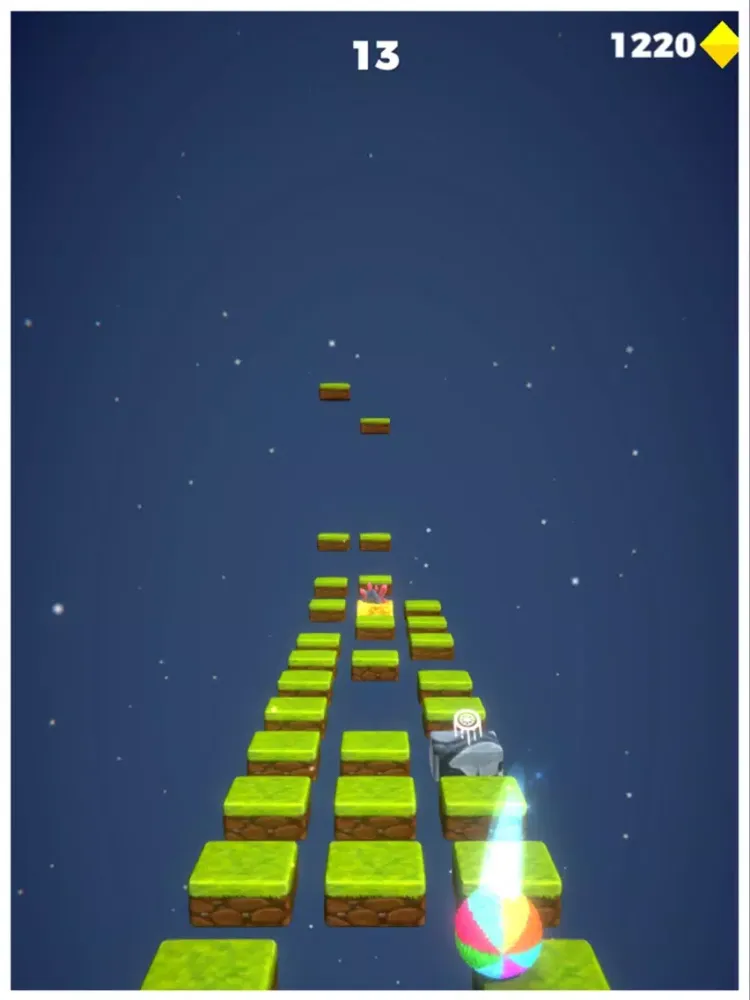 Swipe your finger on left to right to hop the ball around the blocks and don’t let the ball fall off the blocks. More you hop, the more you go. If the ball will drop off the block, you will lose. Go and navigate the ball by jumping on the blocks. Earn points and collect diamonds.