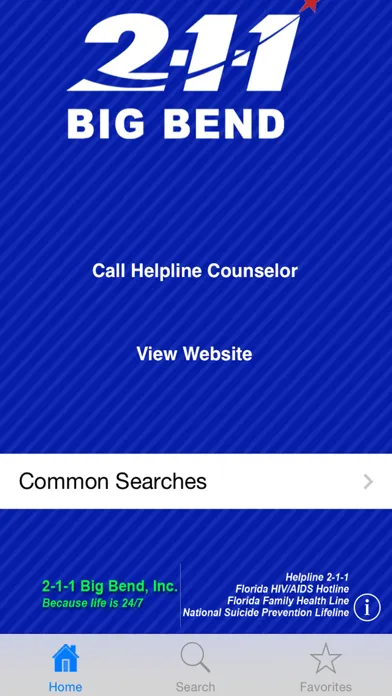 The 2-1-1 Big Bend app provides an immediate connection to more than 1,000 programs in the Big Bend, Florida area, covering Franklin, Gadsden, Jefferson, Leon, Liberty, Madison, Taylor, and Wakulla Counties. Users can find information about housing assistance, mental health issues, substance abuse, domestic violence, parenting skills, employment, food banks, disaster services, and more.