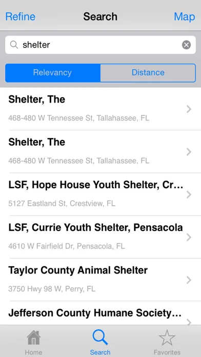 + View search results in list or map form.