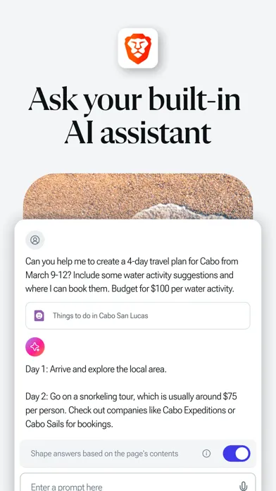 Meet Brave Leo, the smart, free AI assistant in your browser. Ask answers, get answers, translate languages, and more. Leo doesn't record or share your chats, or use them for model training.
