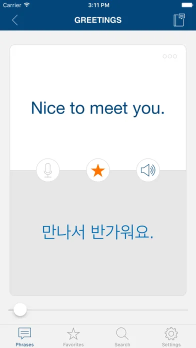 Using this app, you can learn Korean phrases and words from our native Korean speaking parrot. The parrot works together with you to practice your speaking and listening skills, wherever and whenever you are. Learning Korean can never be easier!